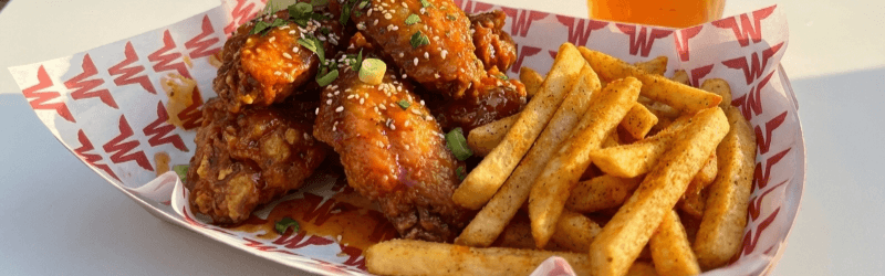 The OG benchmark. Grilled chicken wings, slammed in one of our 13-world class flavours! Meals are served with regular fries and a choice of drink. Upgrade to waffle fries for £1 extra. -